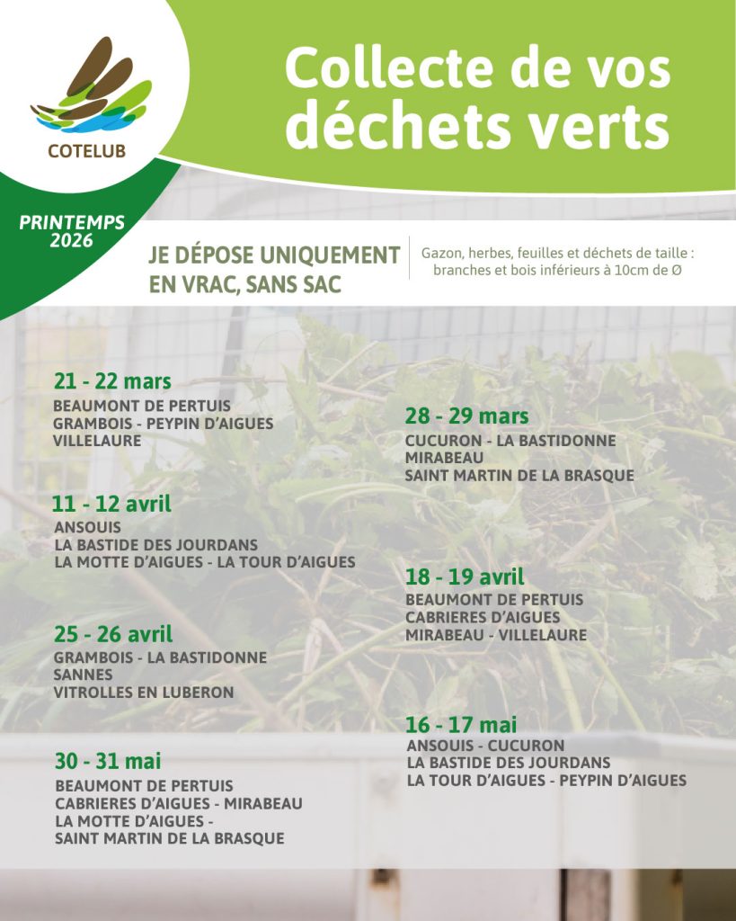 COTELUB – COLLECTE DE VOS DECHETS VERTS – PRINTEMPS 2026